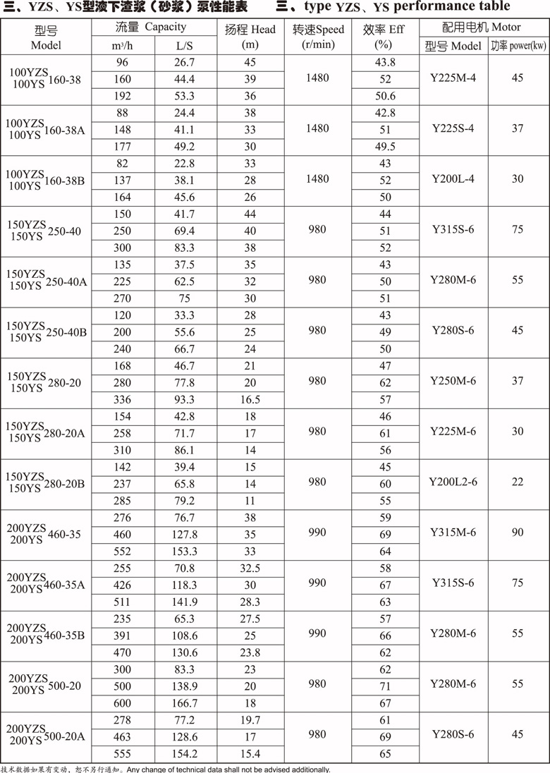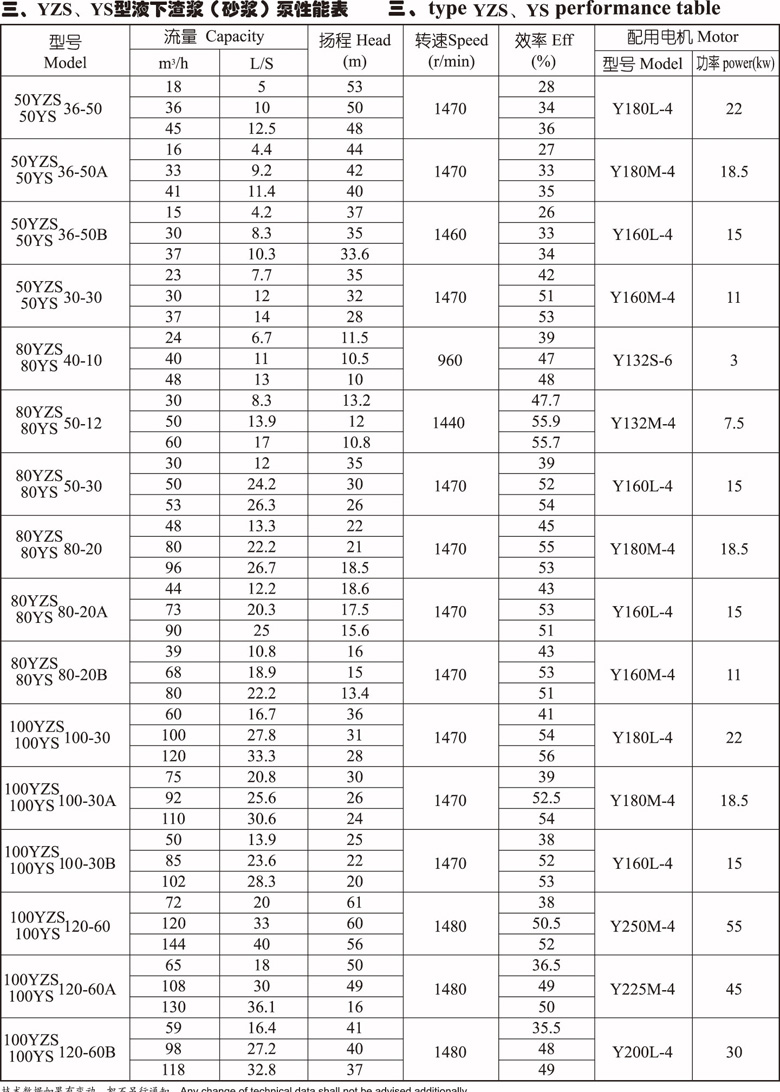 1、YS-YZS型液下重型砂浆泵是立式单级单吸悬臂式离心泵结构,叶轮为半开式叶轮,在叶轮吸入边延伸处设有搅拌叶片。该泵是盈科泵业开发用于加气混凝土行业的一种专用配套用泵。