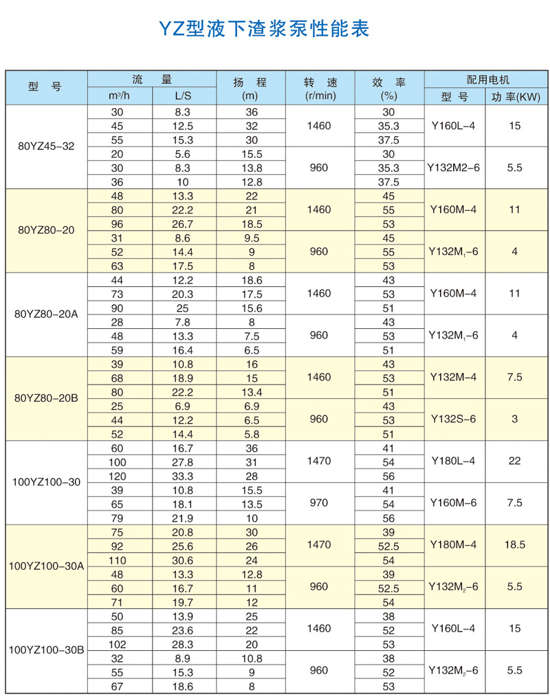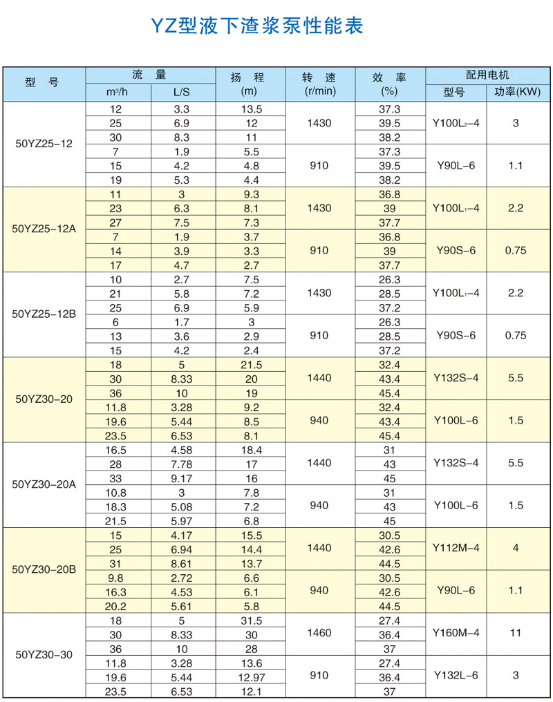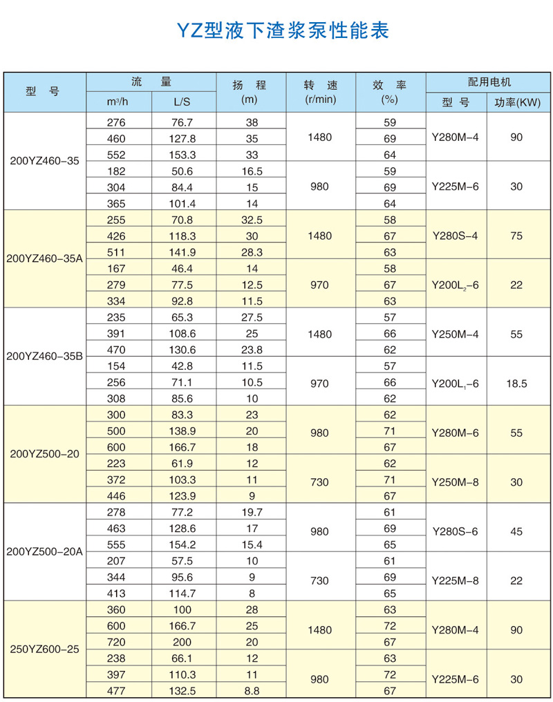 1、YZ型液下渣浆泵是立式单级单吸悬臂式离心泵结构,叶齮为半开式叶轮,在叶轮吸入边延伸处设有搅拌叶片。